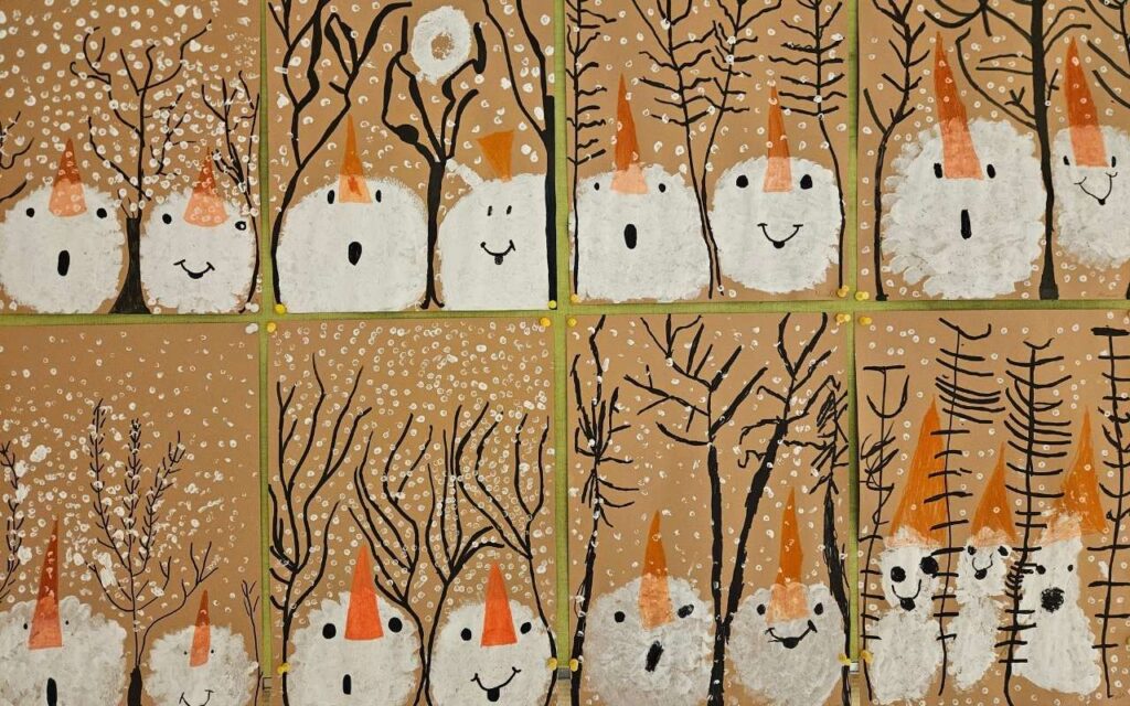 Die Kinder der 1b haben zum Thema Winter und Schnee ihrer Fantasie freien Lauf gelassen. Sehr gelungen!